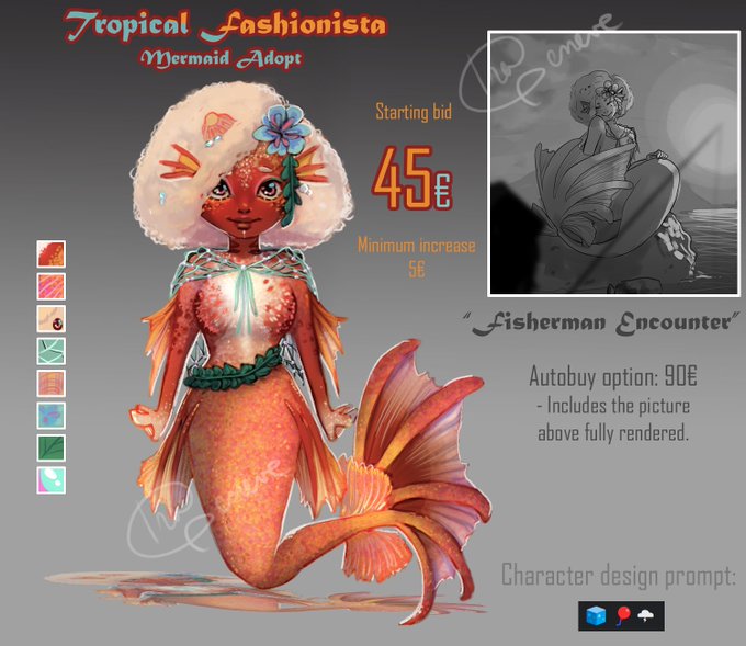 #mermay2023 prompt from my patrons: 🧊🎈🌩 I had a lot of fun creating this mermaid adoptable, and I added an autobuy option with extra goodies as well. Auction ends 24h from the last bid, payment through P4ypal. You'll receive the PNG with no watermark and 50% rights :]