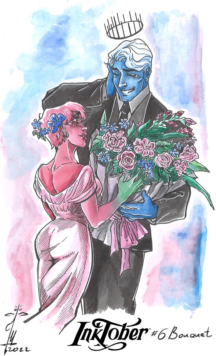 #inktober2022 #bouquet I know that in #Inktober it's customary to stick to a monochrome range, but for these two I made an exception. Hades and Persephone from brilliant webcomic #Loreolympus And no matter what, he will always give her flowers... 💐 #loreolympusfanart