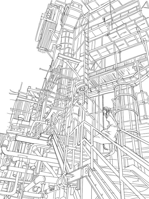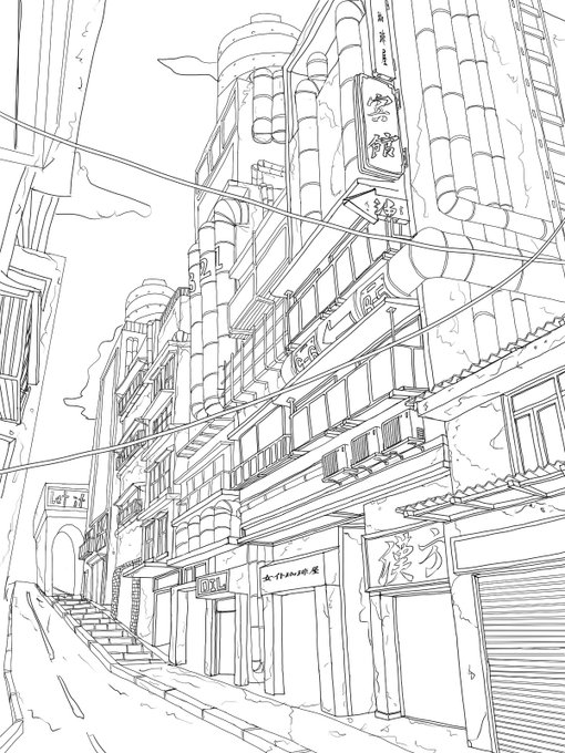 #イラスト #イラスト練習中 #街 街① 最近配管が楽しい