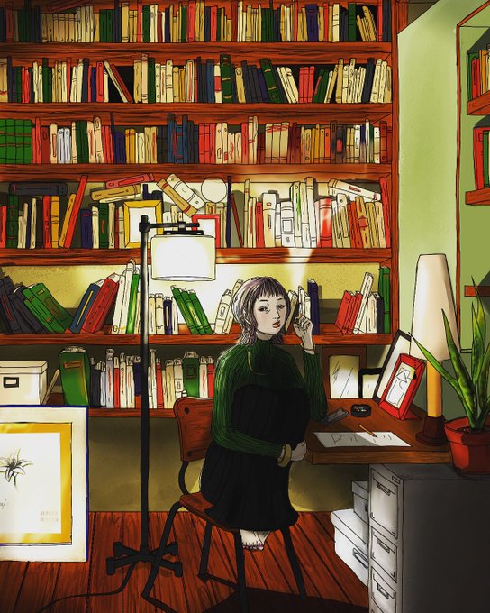 0 16 #イラスト #書斎 #煙草 #本棚 22/09/10 16:32