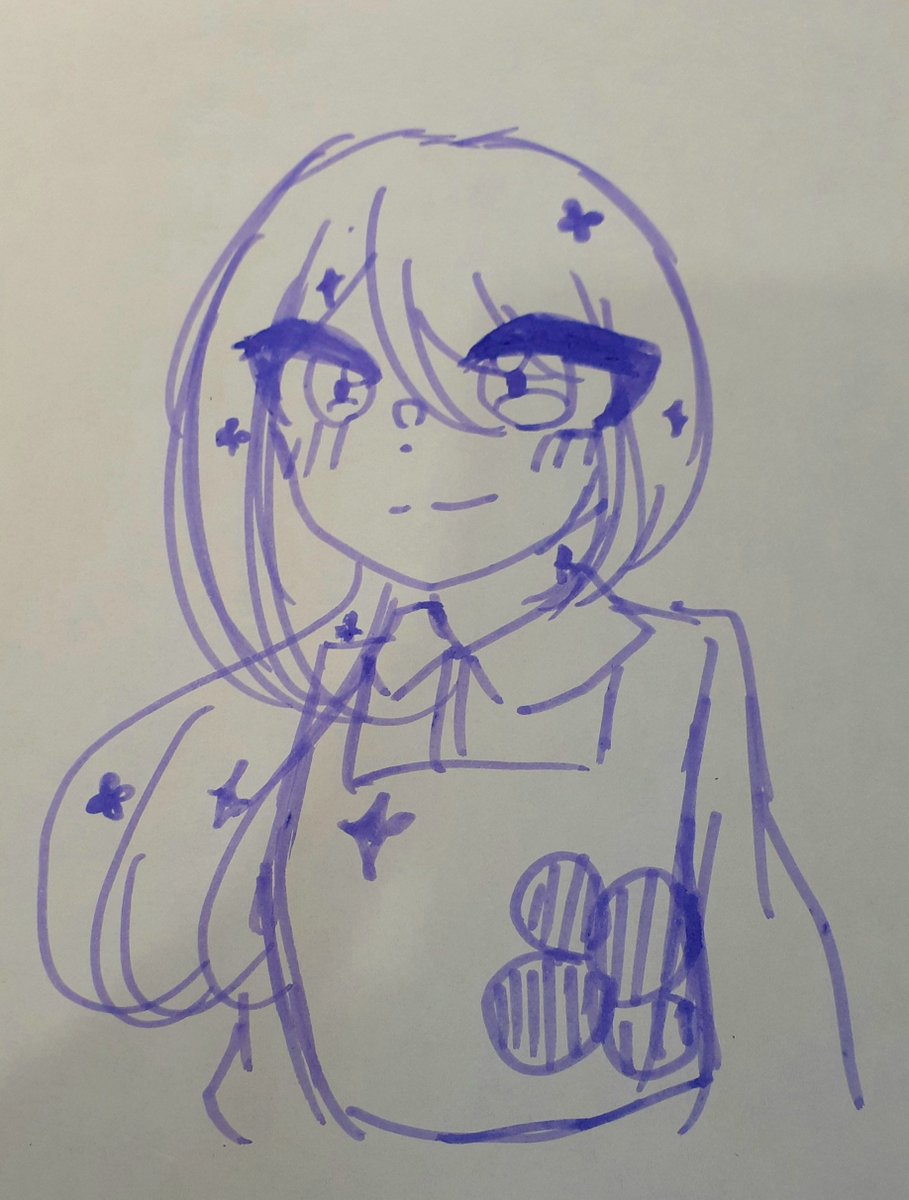 ~本日の落書き~ 今日は、昨日青ぺんだけで、一発がきした女の子です~!! いつもはポーズがかけなくて棒立ちだけど、今日は描けたかも~! #本日の落書き #オリキャラ #落書き #青ペン #イラスト #絵柄が好みっていう人にフォローされたい #冬休みはフォロワーが増える