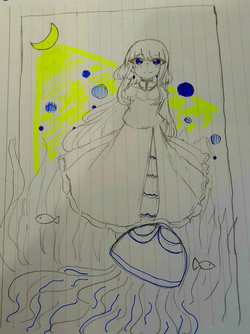 ~本日の落書き~ クラゲちゃんです! 可愛く描けた! #オリキャラ #イラスト #絵柄が好みって人にフォローされたい #絵柄が好みって人がいればいいなぁ #可愛いと思ったらRT #クラゲ #擬人化 #イラスト練習中