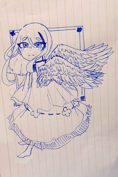 ~本日の落書き~ 今日もまた天使ちゃんを描きました~!後ろ向きのところ描いてみたかったので、楽しかった✨ #落書き #一発描き #イラスト #天使 #絵柄が好みって人にフォローされたい #絵柄が好みって人がいればいいなぁ #ボールペン