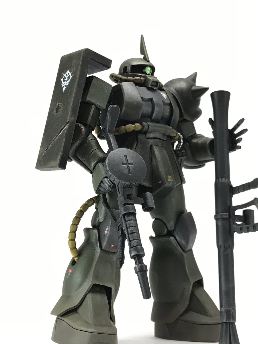 ザク小隊完成しました💡ジャングルでの運用を想定して濃い機体色に仕上げています😎 隊長機のモノアイは連邦のパーツを流用しているためグリーンになっているという設定です💡 #ザク #ガンプラ #ガンプラの画像を貼るとRTされるときいて