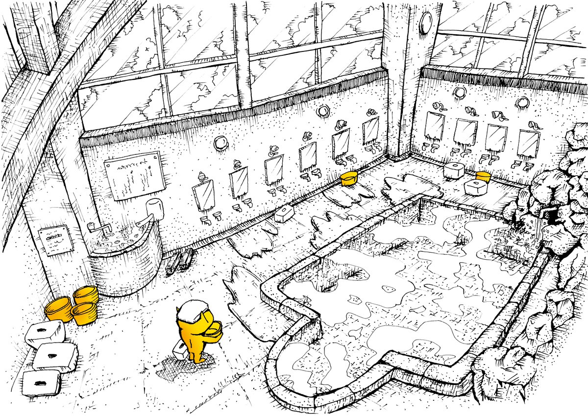 【展示会のおしらせ】 なんと!線画イラスト展示をもう一度させていただくことになりました。シリーズ「オンセンサンの世界」、第2回は「眺望」と題し、銭湯戯画6点の他、銭湯に至る街角風景の描きおろし4点をお披露目。詳しくはチラシをご覧ください。 #kagoshima_art #オンセンサン #鹿児島イラス