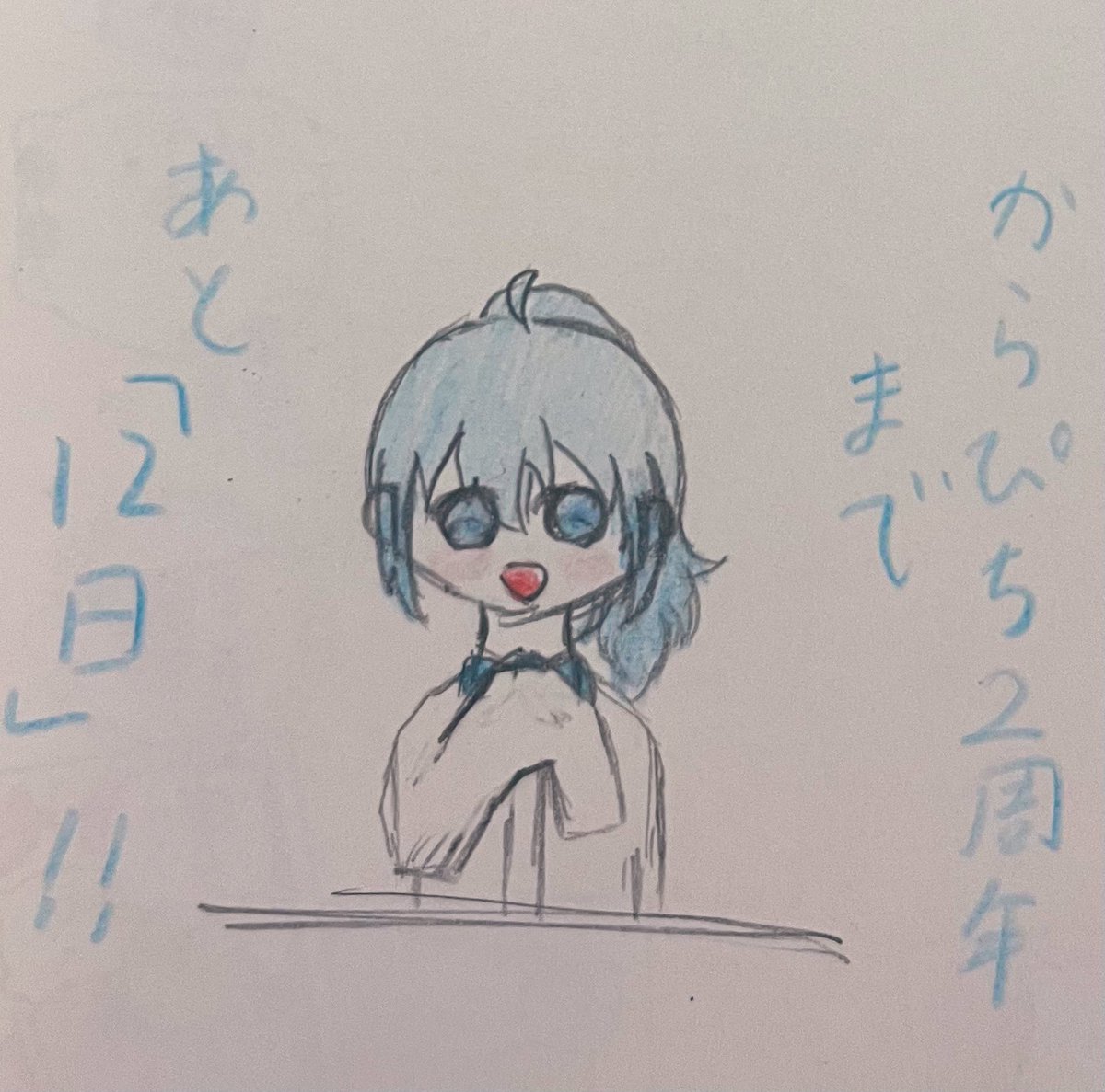 からぴち2周年まであと、3日!! 元気で元気な(?)たっつんさん!! iPadのペンなくて困った→紙に描けばよくね?え?私天才?((殴 ってことで紙に描きました!! #からぴち2周年カウントダウン #からぴち #カラフルピーチ素材