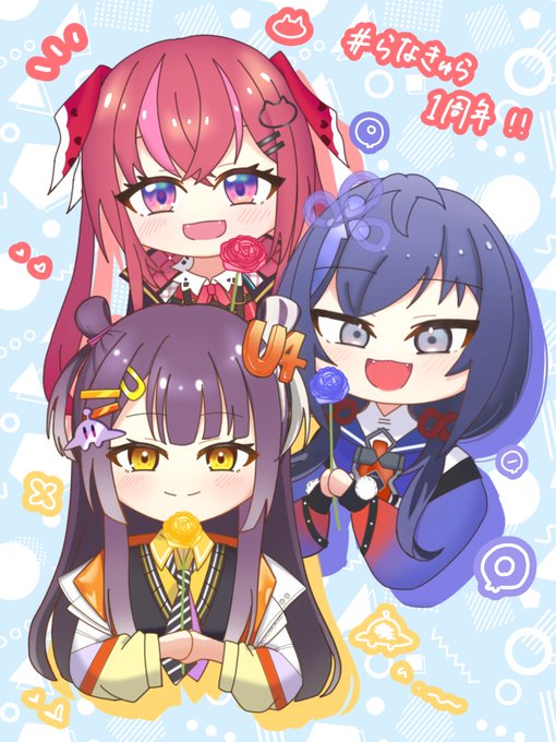 #らなきゅら1周年 遅くなりましたが、活動1周年おめでとうございます!🥳🎉✨ #むにゃーと #ぽんとれーと #Yotsuh_Art