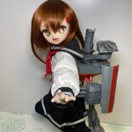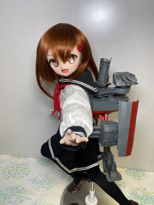 うちの子に装備させるとこんな感じです。関節部分は磁石なので回転着脱可能です。 #MDDはいいぞ #艦これドール #第六駆逐隊