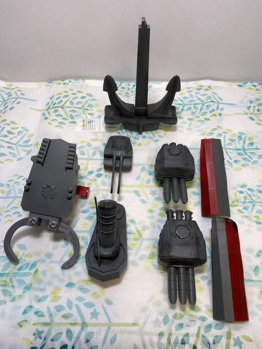 3 15 バラすとこんな感じ。右下の盾は造形に失敗して歪んでしまったのでダメージ加工風に誤魔化してます(⌒-⌒; ) #艦これドール #MDDはいいぞ 20/03/15 18:32