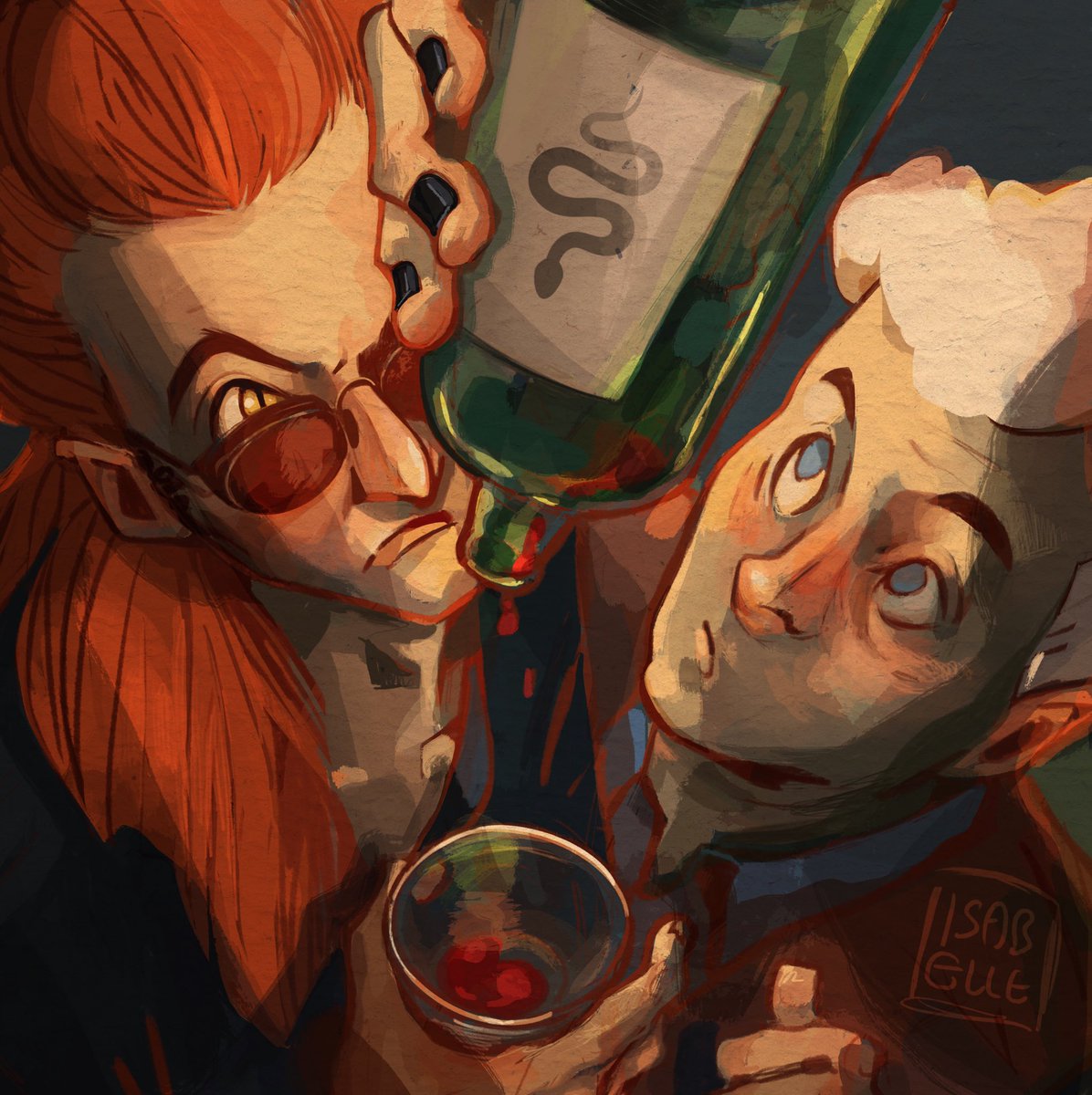 An angel and a demon had been drinking thoroughly for the last hours #GoodOmens #GoodOmensFanArt @neilhimself @michaelsheen