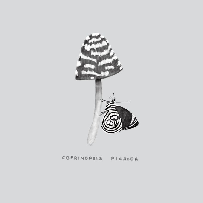 Here is the most FANCY mushroom I could find! Coprinopsis Picacea 🦝🐺🐨🐭🐩🐘🦛🦨🦡 Day 7 of #inktober2020 Collect all the fungi in your basket! app.rarible.com/isakost/onsale via @rariblecom #mushrooms #inktober2020day7 #Inktober #Rarible #fungi #blackandwhite
