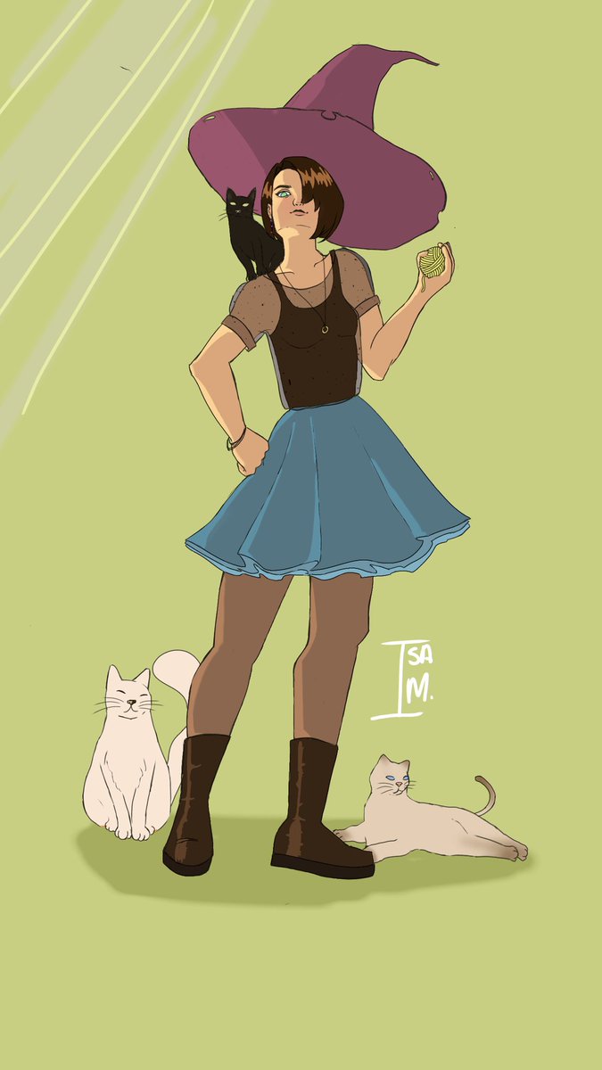 Meu primeiro inktober Primeiro dia🌻 Bruxinha loca dos gatos #inktober #inktober2021 #digitaldrawing #alaskatober #drawing
