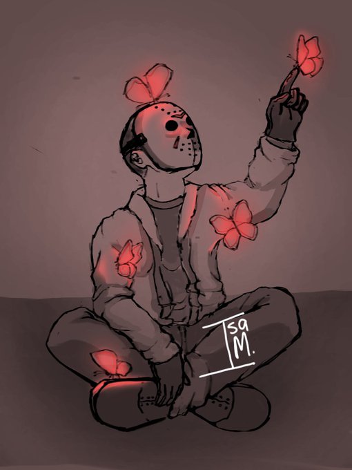 Dia 18🔪 Jason com borboletas Eu tento desenhar coisas fofas🥺🥺 #inktober2021 #inktober #alaskatober #Halloween #JasonVoorhees