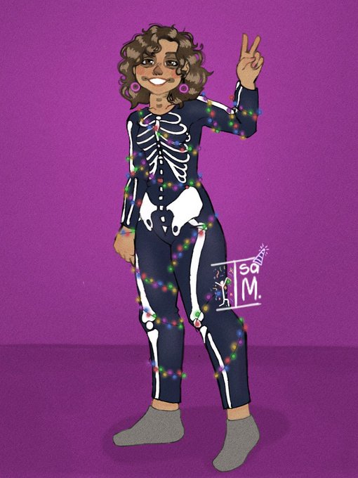Dia 19💀💜 Esqueleto com pisca-pisca Gente, hj é meu níver e eu aproveitei o tema p me desenhar Deu mto trabalho, nn deixem flopar pfvkkk✊😔 #inktober #alaskatober #Halloween