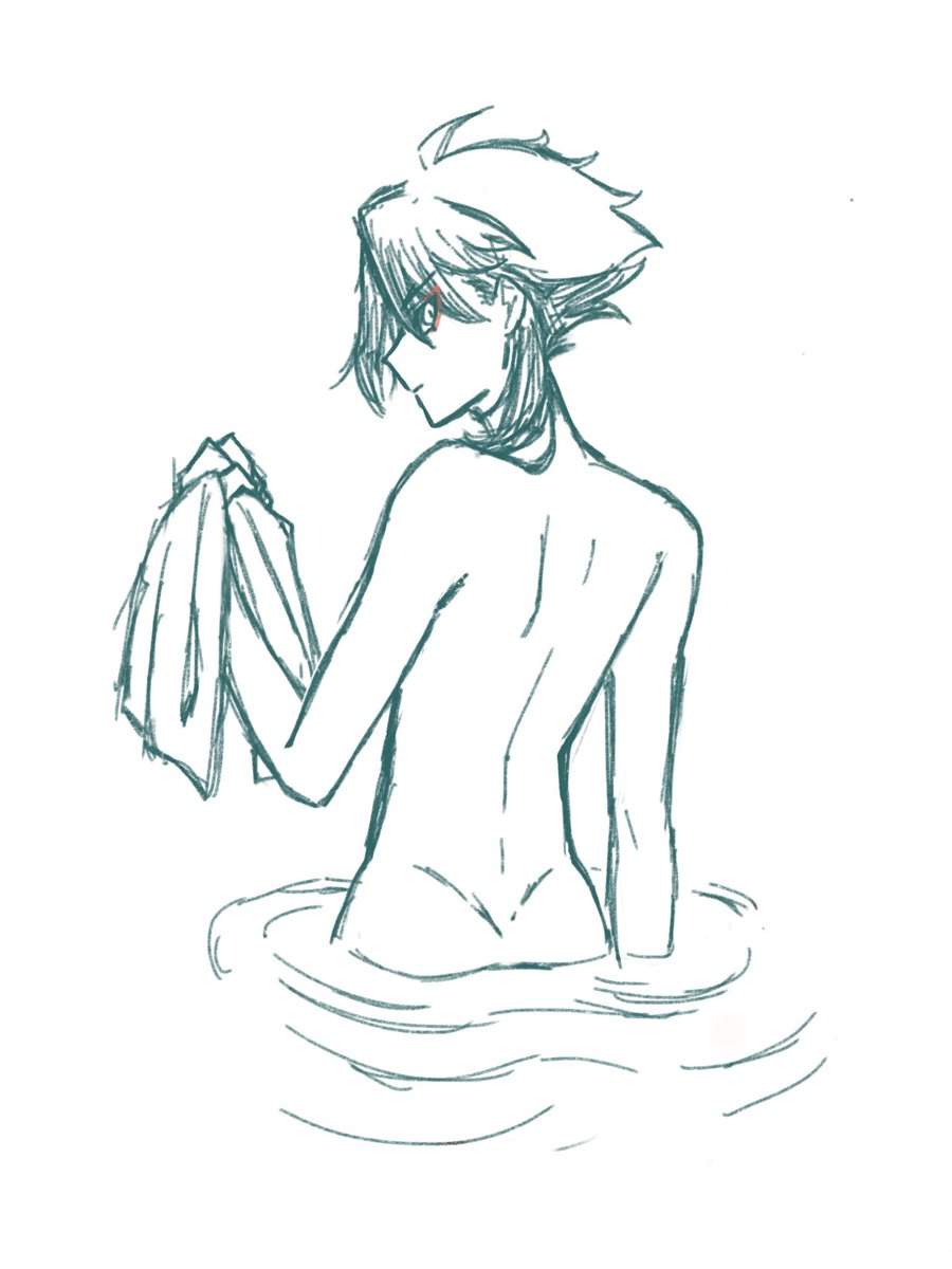 湯浴み(背中描きたかっただけ。) 覗きてぇ、あわよくば一緒にはi(きも) #原神 #原神イラスト #魈 #XIAO
