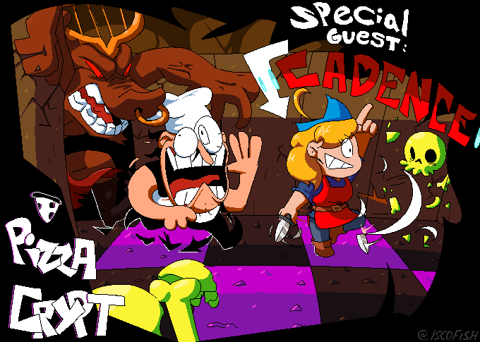 Special Guest: Cadence! From Crypt of the necrodancer! Haven't seen one of it yet so i thought i'd do it, this was really fun so i might make more fanart of #pizzatower ! #Fanart #Pizzatowerfanart #ArtistOnTwitter