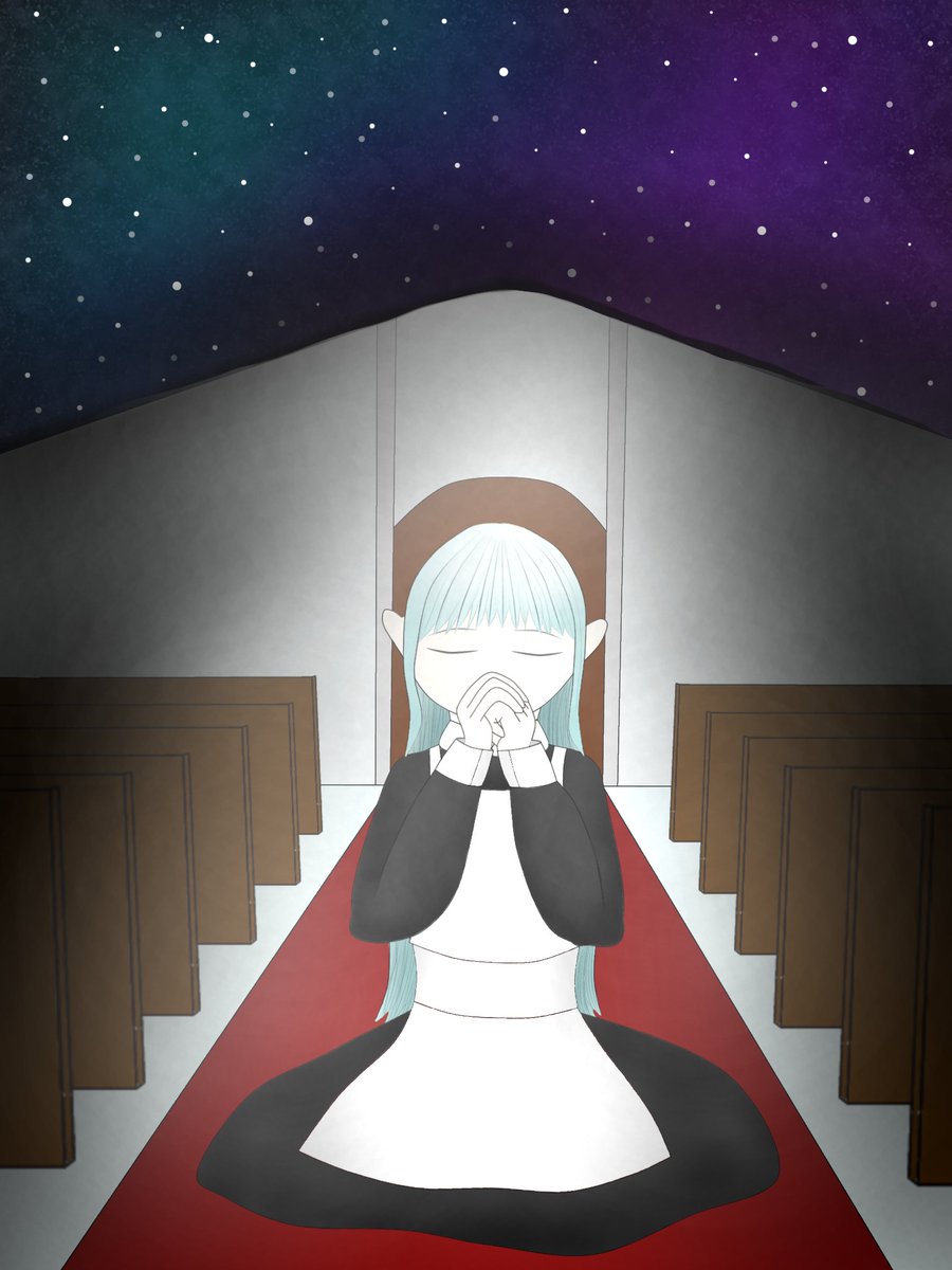 星空の教会で祈る少女 #イラスト #イラスト好きな人と繋がりたい