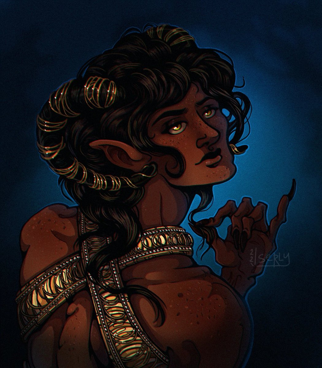 #DnD #DnDcharacter #tiefling #ArtistOnTwitter Another portrait of Discurs, Timora's priestess. Now our characters are on the run, haha, so Discurs had to change her clothes and haircut.
