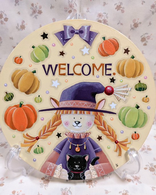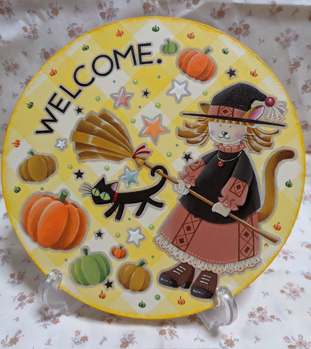 0 5 #今月描いた絵を晒そう #トールペイント かぼちゃとねこのウェルカムボードです🙂 22/10/28 00:54