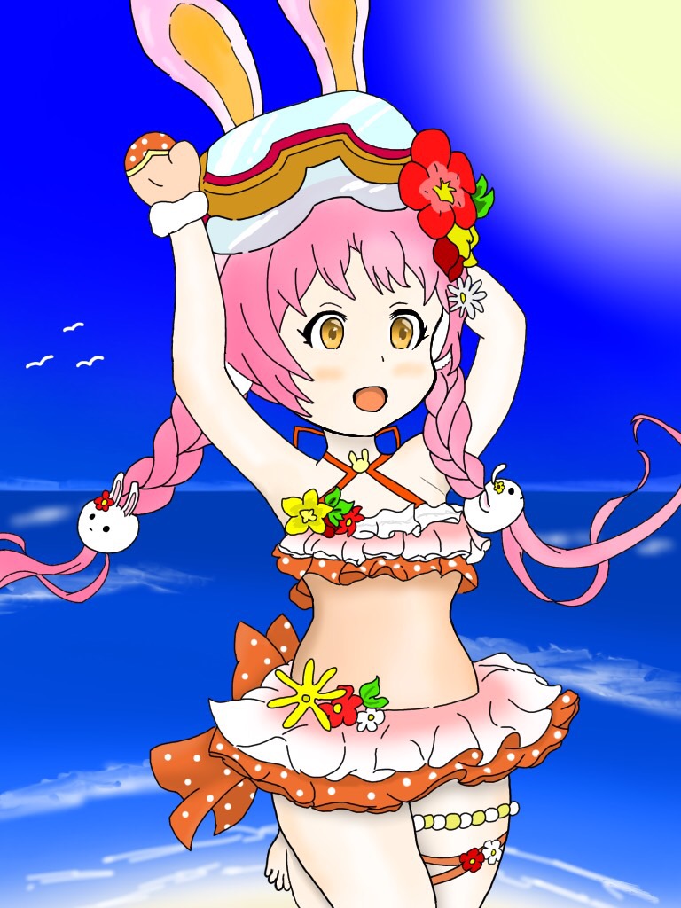 #今月描いた絵を晒そう ミミちゃん(サマー)とイトコん家の殺意剥き出しのネコ