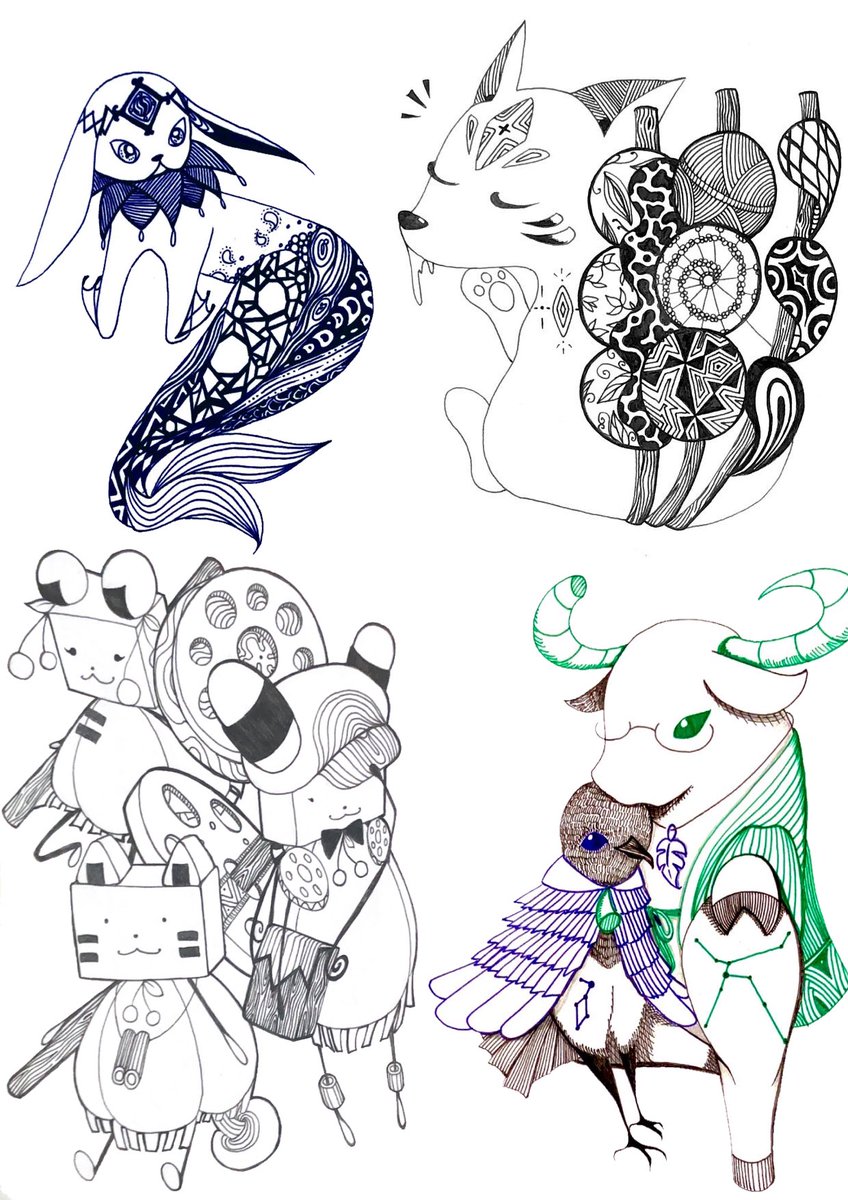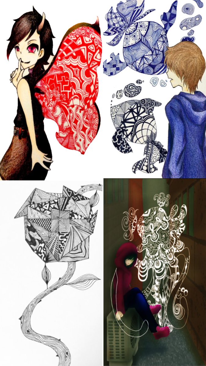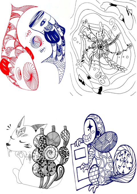 @mii46865627 @mii710116 #アナログ #ゼンタングルインスパイアードアート #絵描きさん交流会 交流会参加します! 現在はこんな感じのイラストを描いていますが、Twitterを始めた頃はボールペンと色鉛筆でセッセと描いてました。 いつか、リメイク版を描いてみたいなと思っています。