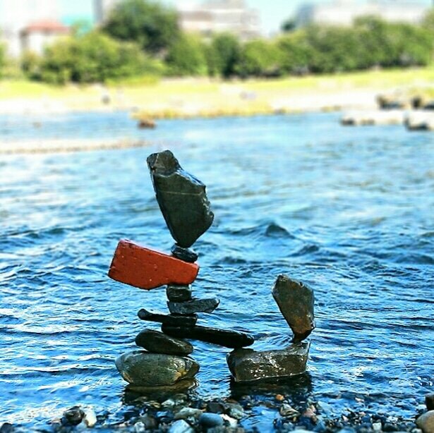 【バランスが大事】 #ロックバランシング #ストーンバランシング #京都 #出町柳 #鴨川デルタ #現代アート #祇園祭 #私の作品もっと沢山の人に広がれ祭り