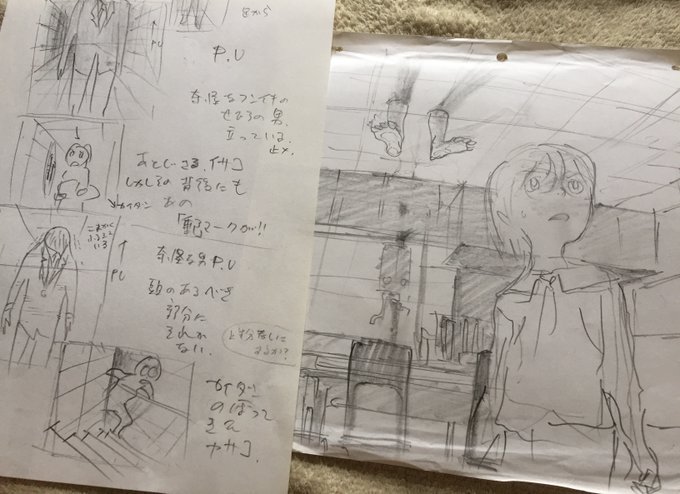 手ブレカメラワークは私の場合、すべて自分でAfterEffectsでつけてますね。TVPでもつけられた気がしますが撮影と互換性がないので拾い直しに。自分で撮影できなかった原画の頃は紙にぎっしり書いた目盛りを撮影さんに拾ってもらってましたが描く方も地獄、拾う方も地獄でプレビューもない一発勝負 twitter.com/tokyo_mono/sta…