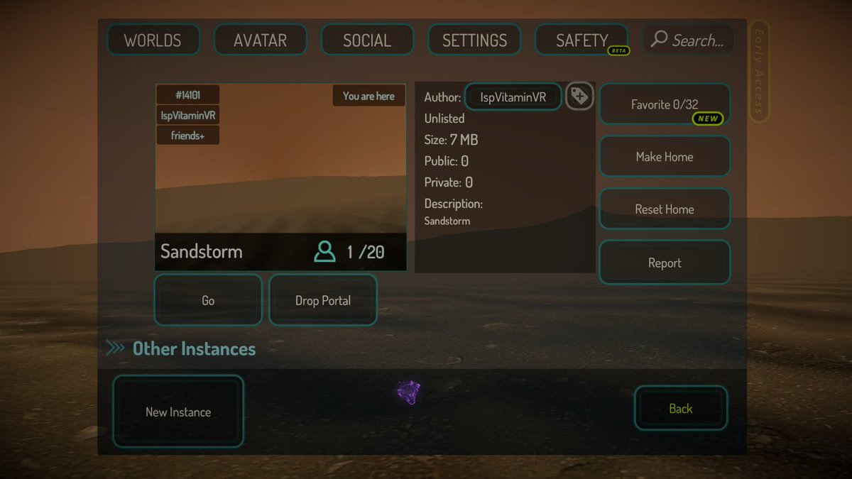 58 172 こういうひたすら砂漠が続いてるマップが欲しかったので作った。パブリック化どうするか迷ってるんだけど需要あるかな #VRChat 18/12/19 19:29