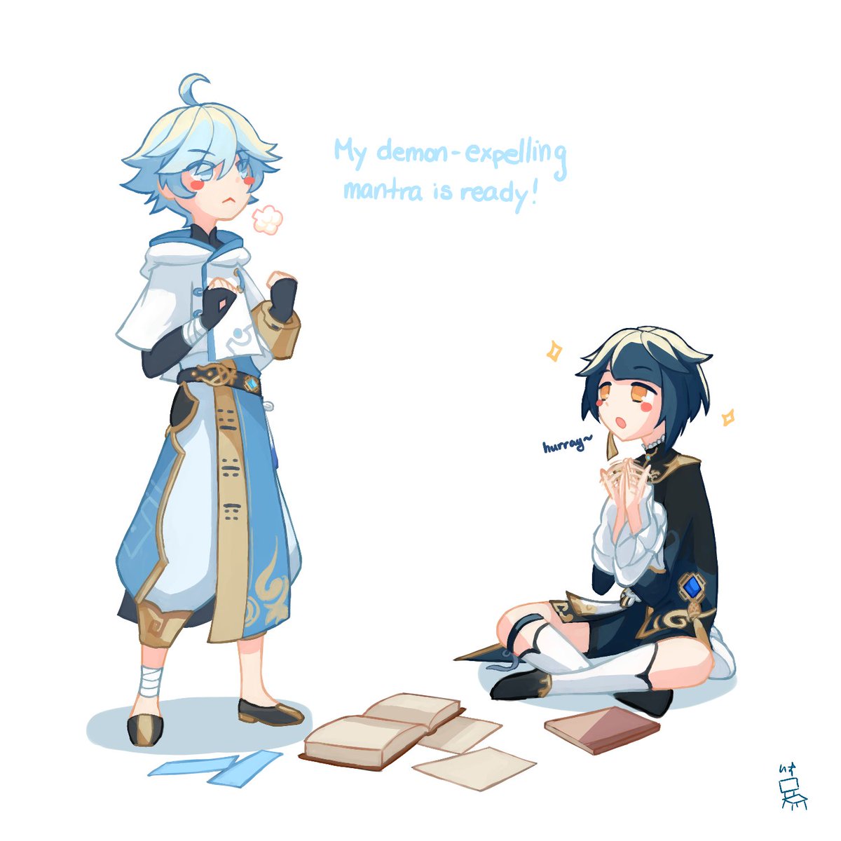 Commemorating Chongyun getting some love with Spiral 12 (ft. Xingqiu, the supportive friend). Chongyun is at your service, ready to exorcise oceanid creatures for you. #GenshinImpact #genshinimpactfanart #Chongyun #Xingqiu