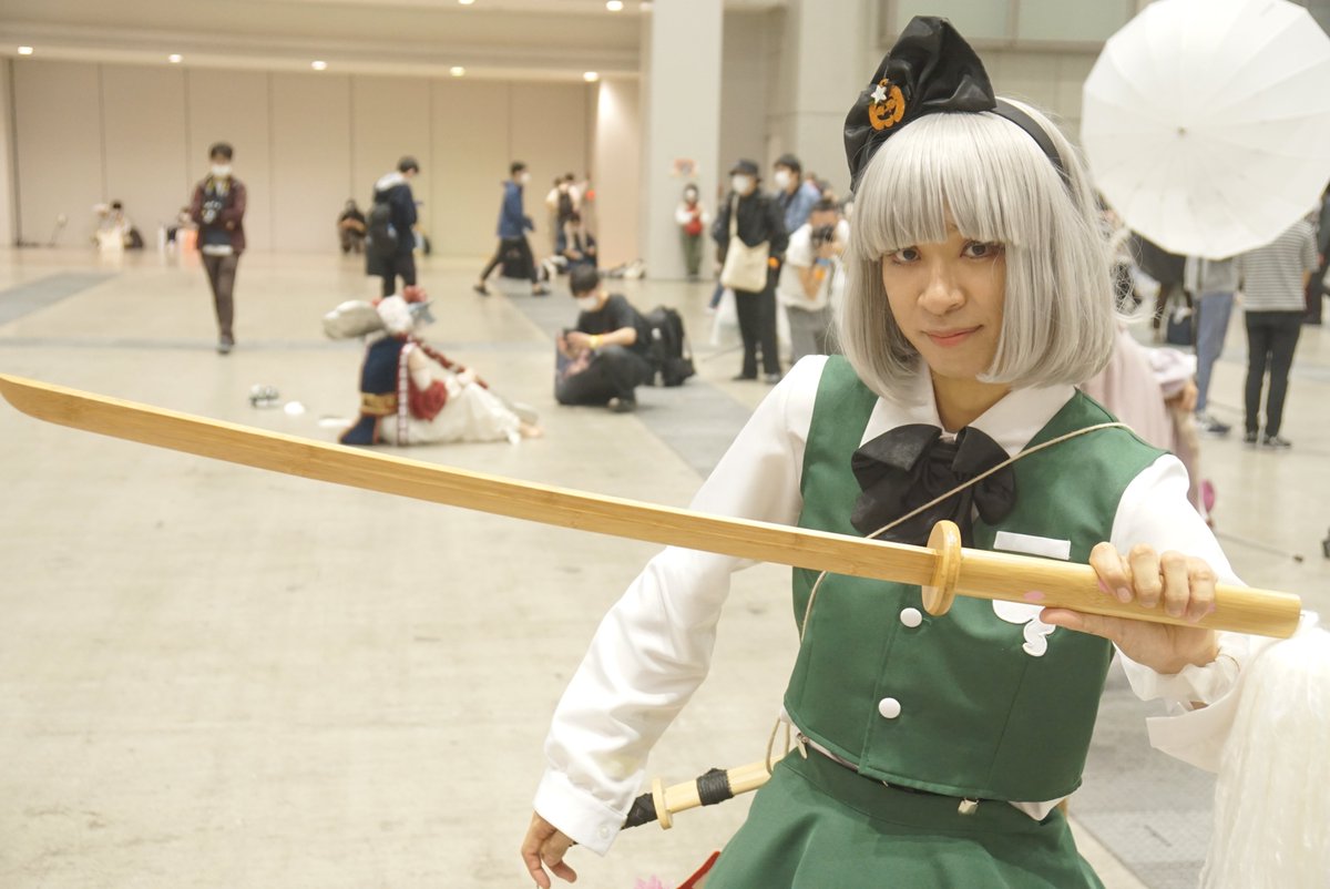 唯一声をかけて下さったカメラマンさんからお写真頂きました。色々とお話もして下さり楽しい時間でした。 本当ありがとうございました。😋✨ (僕はマスクが目印になっている様ですねw🙄) カメラマン📷:銀狐・妖女さん[ @mengitune ] #例大祭コスプレ #東方Project #touhouproject