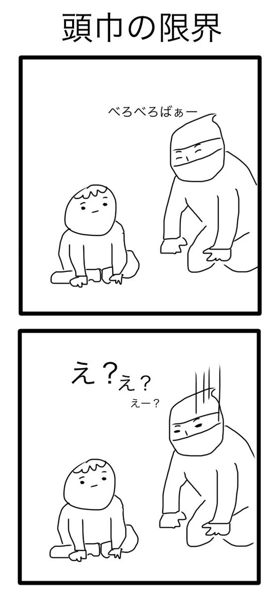 1歳のウチの子、帽子全く被らずで。 #子育て #育児 #漫画が読めるハッシュタグ #ゆるいイラスト #忍者 #ニンジャ