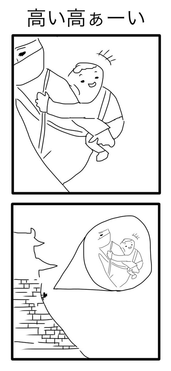 忍者的、高い高ぁーい #子育て #育児 #漫画が読めるハッシュタグ #ゆるいイラスト #イラスト #忍者 #ニンジャ #たかいたかぁーい