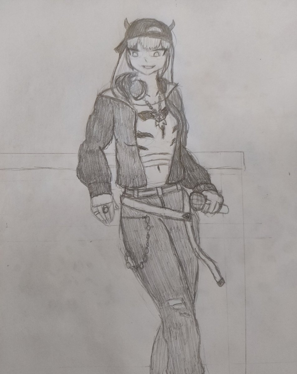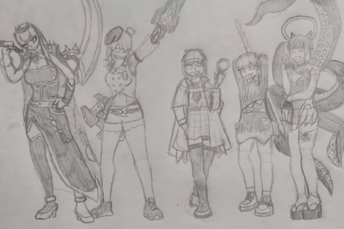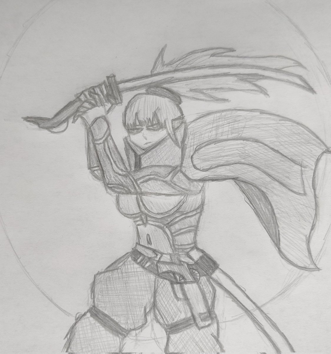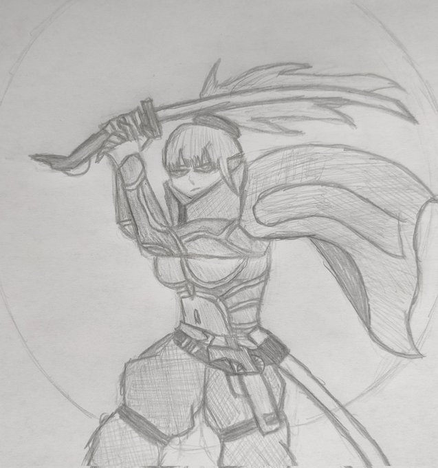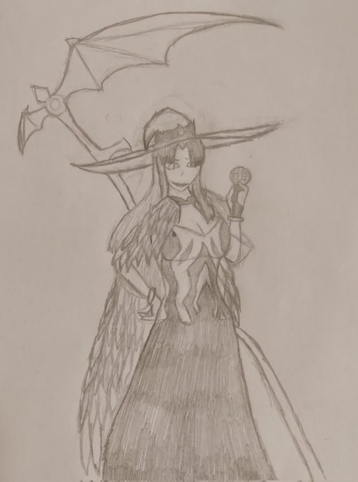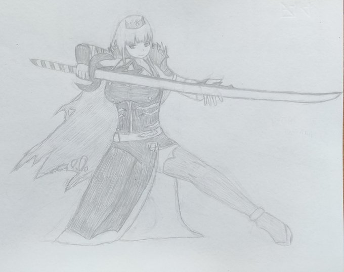 Despite Calli being my oshi, i rarely post my drawings of her (because they look bad :] ) but what the hell, have some Calli with the Hellish Slasher from MonHun #callillust