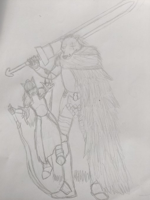 Drew this a while ago, dont think i'll finish it, but i really like how Calli and Blaidd got along #callillust
