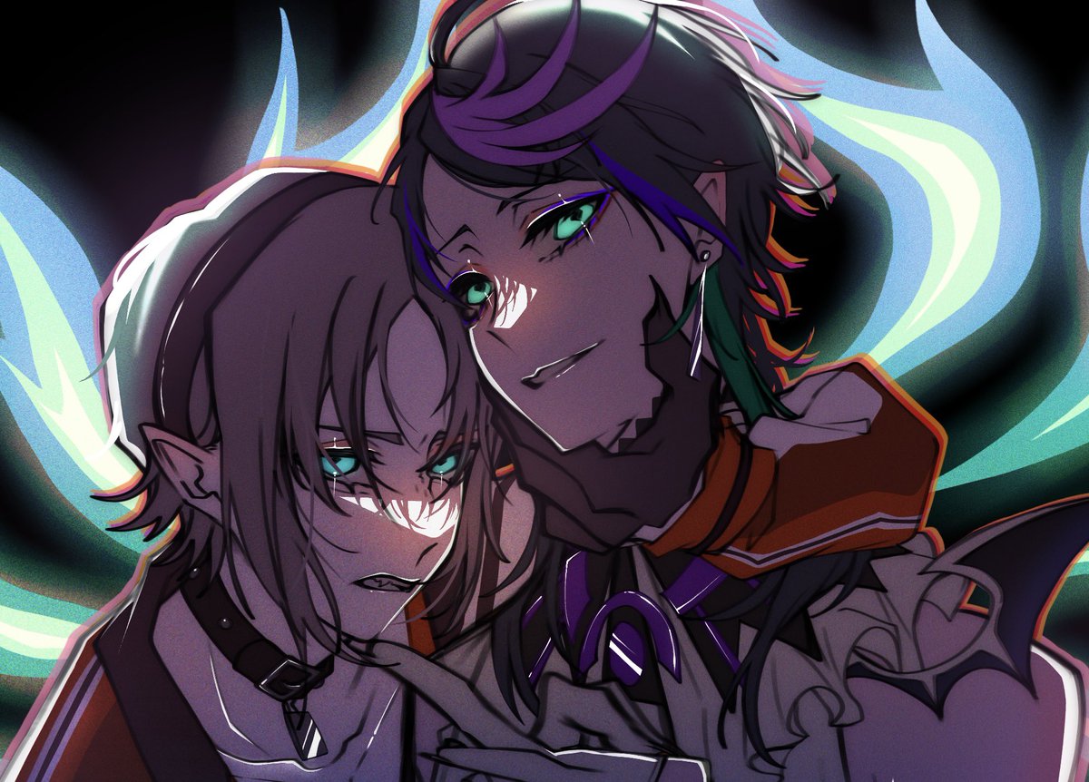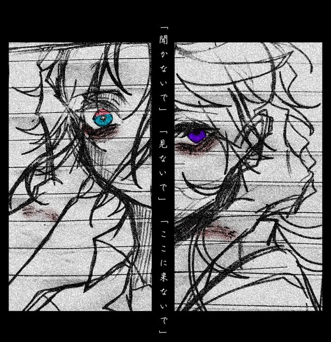 #YaminoArt #MystArt #Shusta #Myshu 「見ないで。」 少年除霊師💜 & 少年殺人犯🧡
