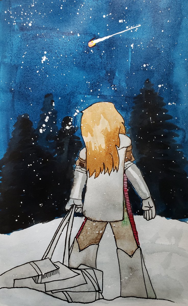 Is that stars or snow you see... or something else entirely? Inktober 11: Snow (The birth of Guy's adventure began with that something else.) #Inktober #Inktober2019 #Inktoberday11 #inktober11