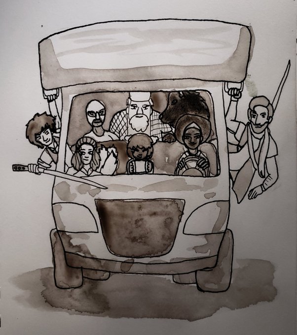 "Get in loser we're going on a road trip," Inktober 28: Ride (Scion- where everyone's the child of a deity and fighting off Nemean Mountain Lions is an expected risk.) #inktober #Inktober2019 #inktoberDay28 #scion #ttrpg