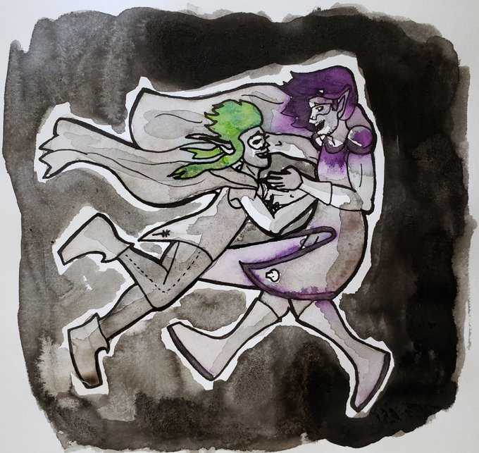 "I'm just drunk enough to tell you that I love you," "-!" "Just one more thing I beat you to," Inktober 30: Catch (Ish and Ganain gettin' that reboot because they deserve happiness.) #inktober #Inktober2019 #inktoberday30 #inktober30
