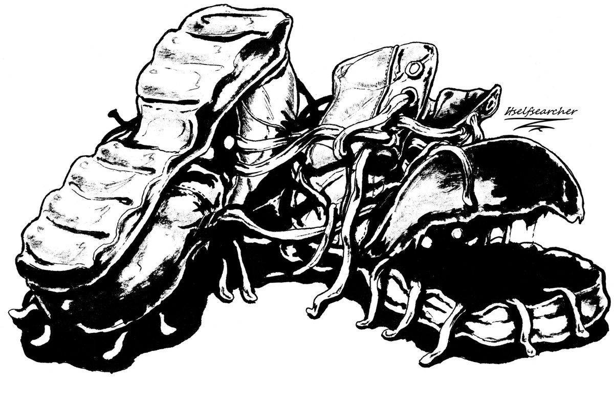 #Inktober2020 Shoes - Ominous - Crawl Made themes in pairs, 3 themes left hmm... 2 drawings? Nope, embrace the powa of laziness :3