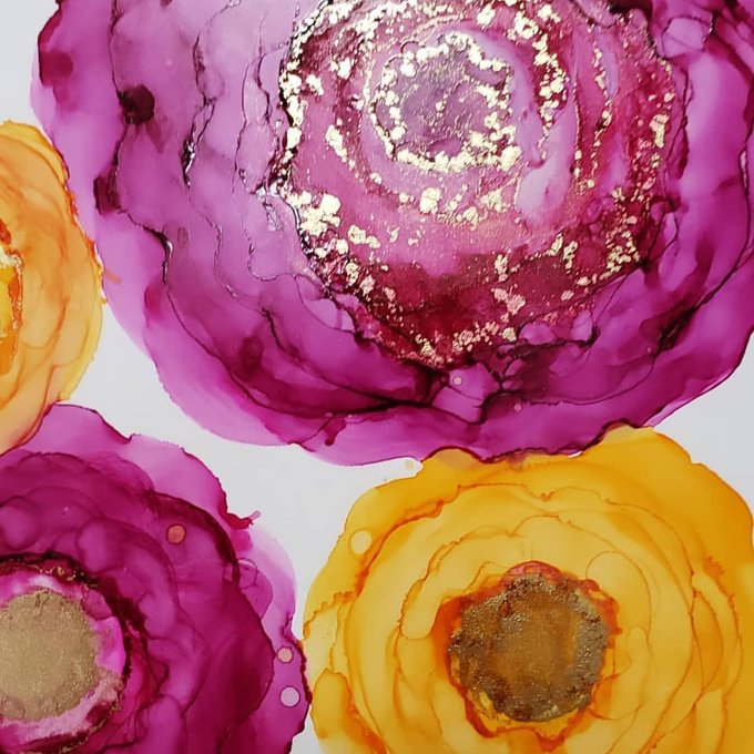 0 1 #アルコールインクアート #もうすぐ夏 ということで #ひまわり 間だ早かった😆 #アルコールインクアート愛知県 #コピック #ユポ紙 #きいろ#ちゃいろ #ゴールド 種っぽい?😆👌 20/05/21 18:06