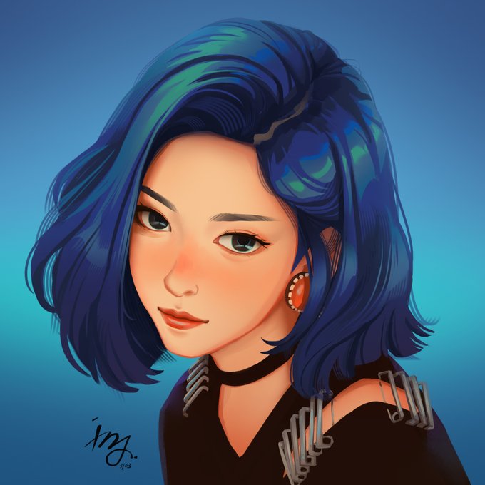 246 793 Blue hair Ryujin still my fav so far 😊 #RYUJIN #류진 #fanart 21/03/31 22:20