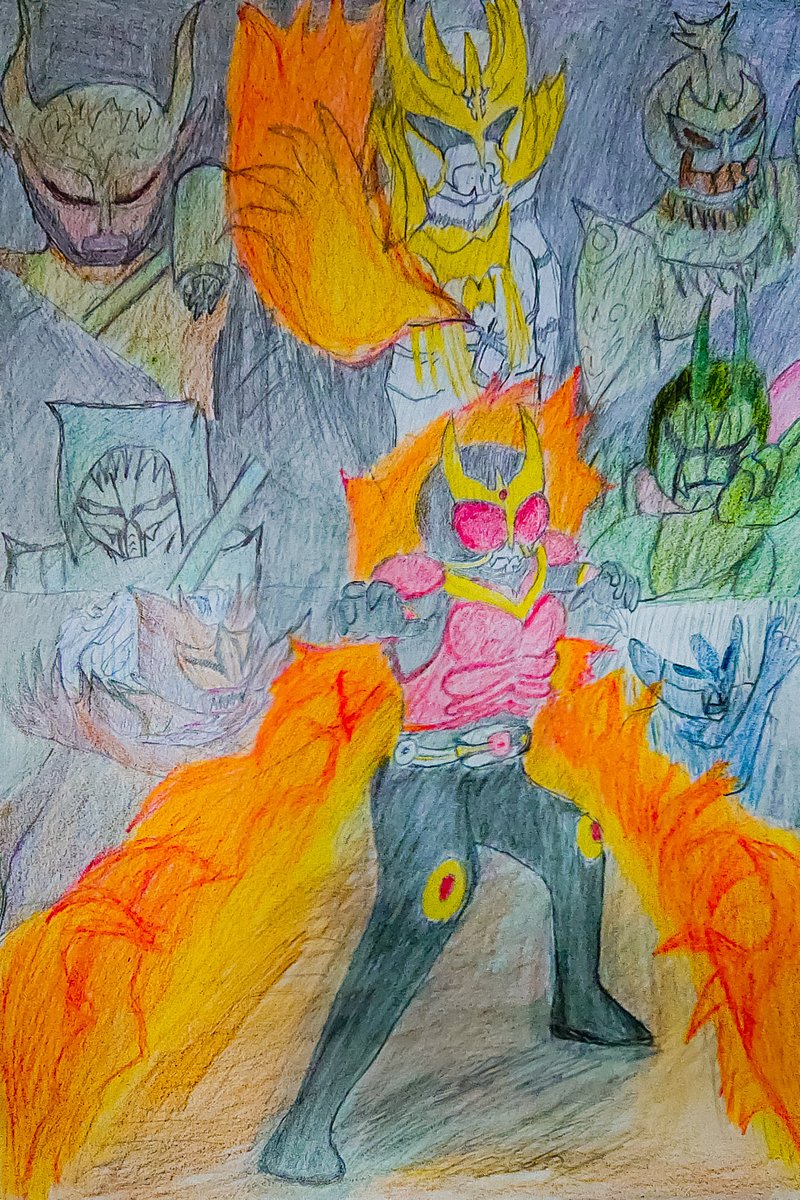 #アナログイラスト #色鉛筆 #仮面ライダー剣 #キングフォーム