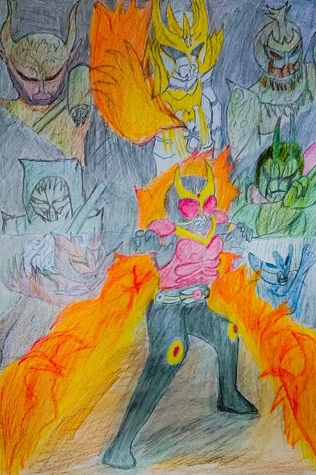 1 4 #アナログイラスト #色鉛筆 #仮面ライダー剣 #キングフォーム 22/05/21 21:54