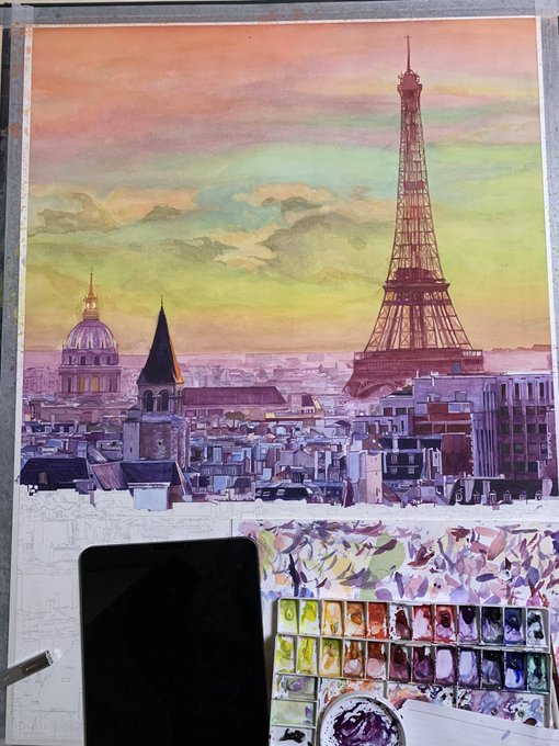 インスタでヨーロッパの街並みをメインで撮っている写真家の写真を模写しました。 この絵はパリの街並みで、個人的にも初めてこう言った風景画を水彩で描くことを試みた、処女作です。 #watercolor #painting #art #Paris #cityscape #水彩画 #パリ #模写