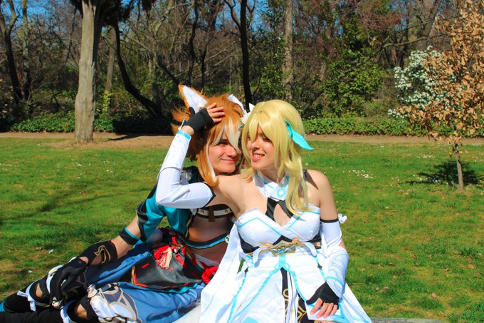 《 A traveler and a snezhnayan...? 》 Photo by Cami (instagram.com/cami_ogl/) Lumine is @SilicaSulfate Edit and Childe by me #genshincosplay #chilumi #childecosplay #luminecosplay