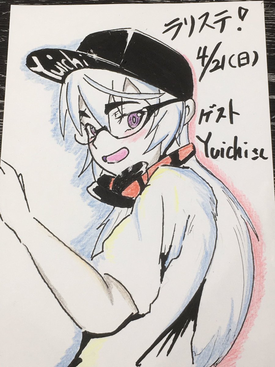 今回yuichiさんが #ラリステ にゲスト出演されるという事でチャイカにyuichiさんの服を着せた姿を、お絵描き喫茶「がふぅ恋猫」@gafukoineko さんで描かせていただきました!
