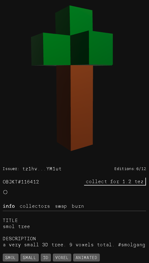 Smol Voxel Table objkt.com/asset/hicetnun… 2/5 on @objktcom for 0.45 $xtz 5x5x5 voxels in .glb format _ #hicetnunc #tezosnft #cleannft #hicetnunc2000 #OBJKT #smol #smolgang #smolNFT #voxel #voxelart
