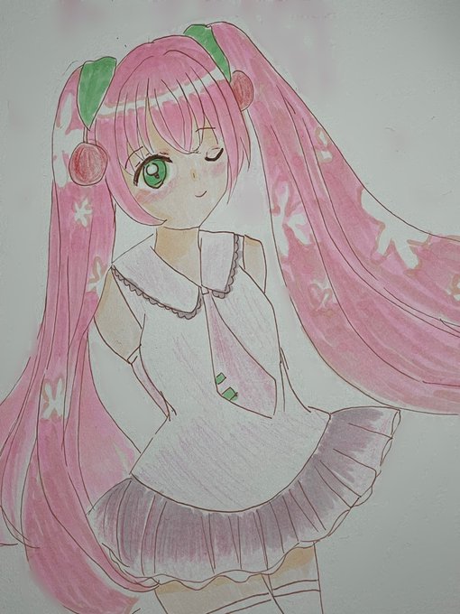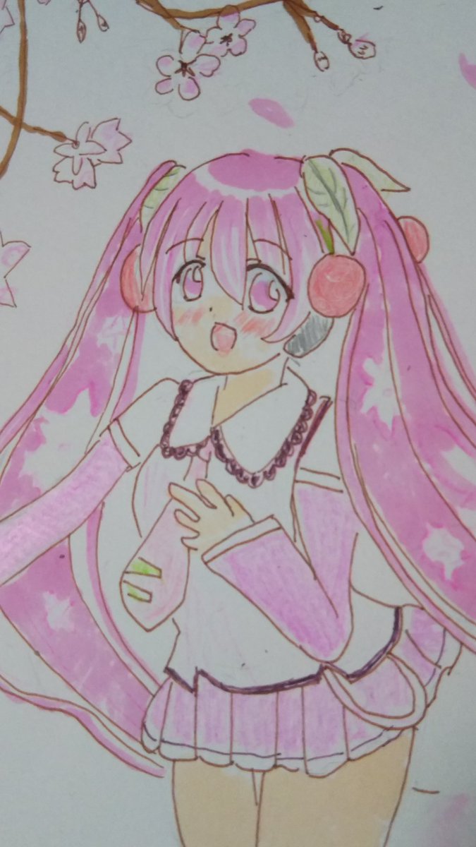 #春爛漫お絵描き大会2019 #桜ミク #ボカロ #コピック #色鉛筆 私も参加します! 桜ミク描きましたぁ😂 🌸🌸🌸