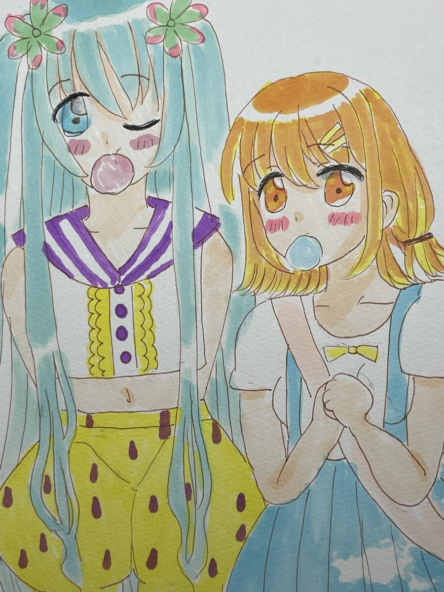 2 3 ミクと夏祭り** #コピック #アナログ #いらすとりっぴぃ 22/08/27 17:25