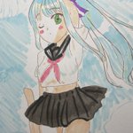 4 6 人魚ミク描いた🧜♀️(背景はデジタル) #初音ミク #アナログ #デジタル #イラスト基地 21/09/19 19:50